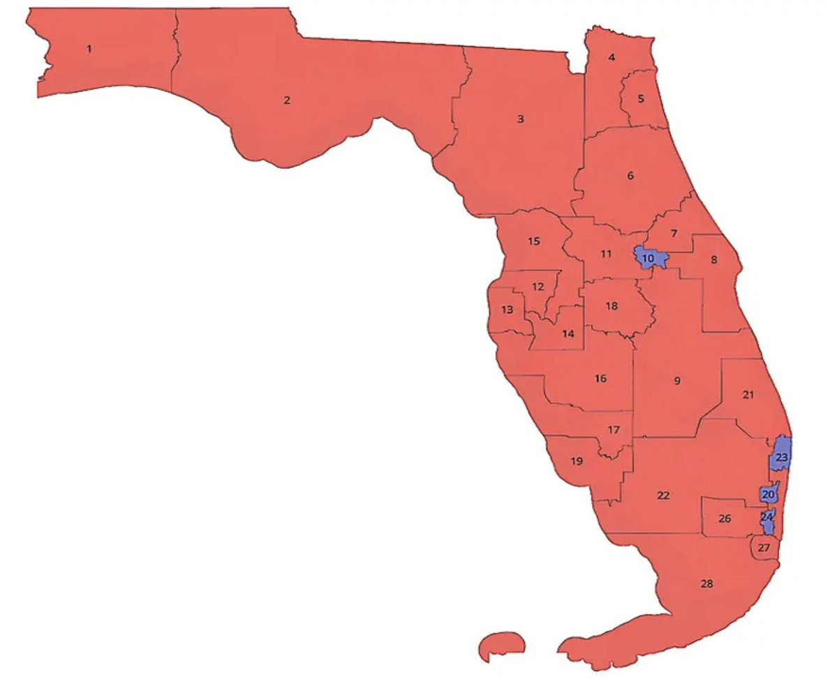I should mention that this map is almost certainly illegal. Florida’s constitution prohibits redrawing congressional or state legislative maps for partisan gain. But DeSantis seems confident he can get the Florida Supreme Court — six of whose seven justices he appointed — to look the other way.